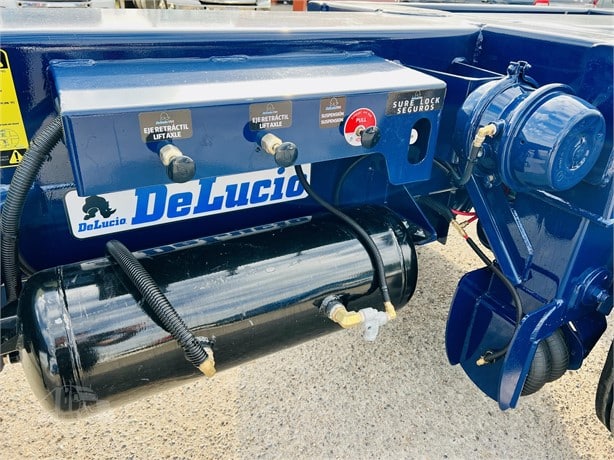 Command the 2024 De Lucio USA 40/20 extendable chassis for sale—revolutionary tri-axle intermodal beast (29’11” retracted / 40’10” extended length x 96″ width, 48″±1″ fifth wheel height, fixed tridem airbag suspension, one fixed + two drop auxiliary axles @25k-30k ratings each, 11R22.5 new radial tires on aluminum 10-hole wheels, ABS system w/2S/1M ECU, heavy-duty pin locks + 4x+ twistlocks, single rail frame design w/manual one-step extension locks, 100″ landing gear centerline, Jost 2-5/16″ 50mm kingpin, Hendrickson air ride, BPW axles, Meritor brakes). Buy 2024 De Lucio USA 40/20 Extendable Chassis Online New