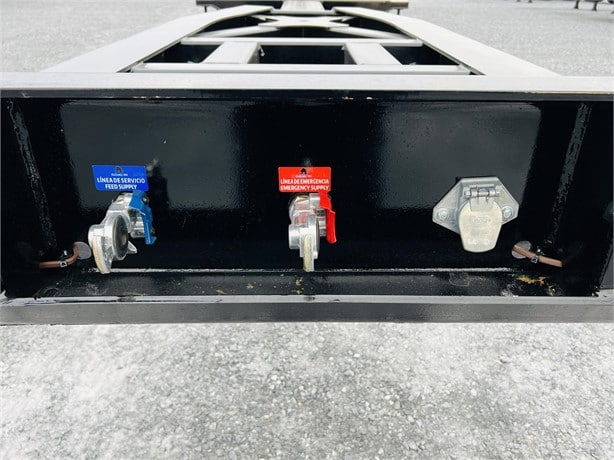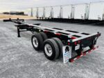 TTMA/AAR/ISO 668 / FMVSS Compliant: Single rail telescopic main beams, fixed tridem airbag (Hendrickson/Parker), BPW 9k axles x3 (one fixed/two aux drop), 11R22.5 16-ply radials aluminum wheels, Jost kingpin, manual extension locks, 4+ twistlocks/pinlocks.
