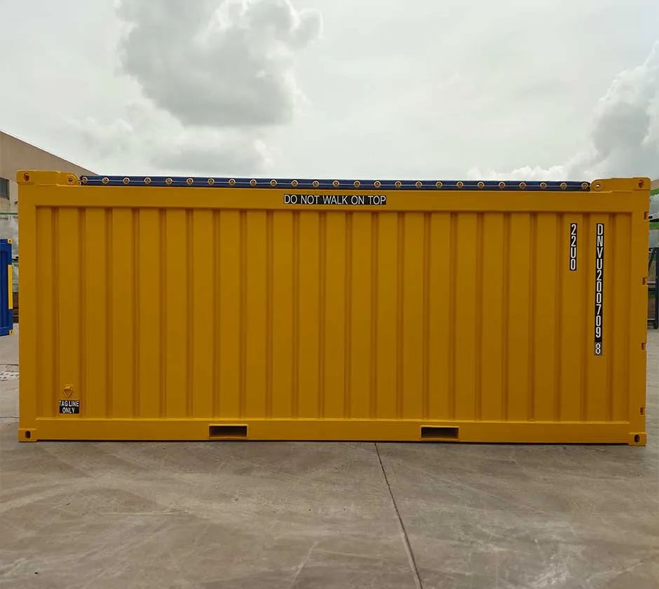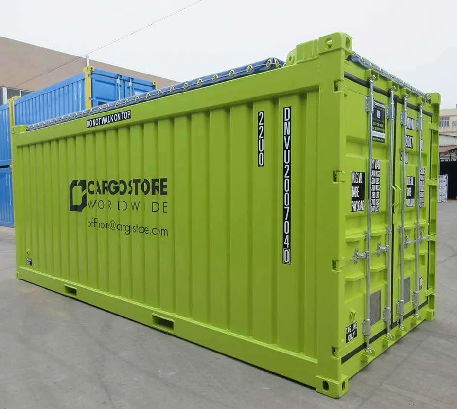 Conex depot shipping DNV 2.7-1 Certified 20ft Offshore Open Top Container (also known as Closed Top CCU’s) come in flat or heavy duty corrugated panel.
