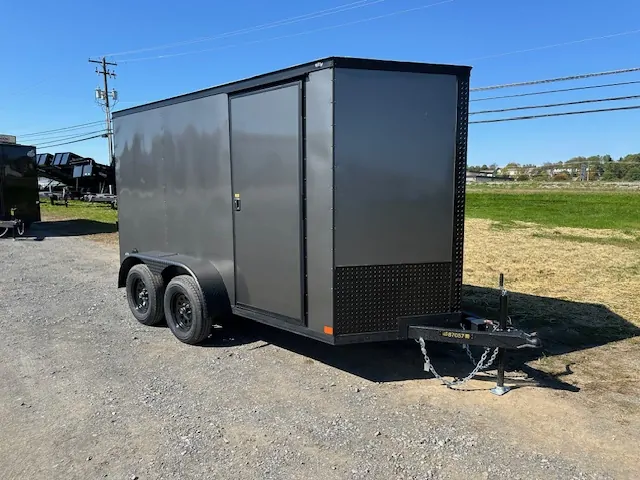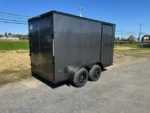 The Covered Wagon 6 x 12 Dual Axle Enclosed Cargo Trailer is specifically designed for robust and secure transport of a variety of goods. Its dual axle structure offers enhanced stability, making it suitable for heavier loads. The added black trim provides a sleek appearance, appealing to both commercial and recreational users. Buy Covered Wagon 6 x 12 Dual Axle Enclosed Cargo Trailer – Black Trim