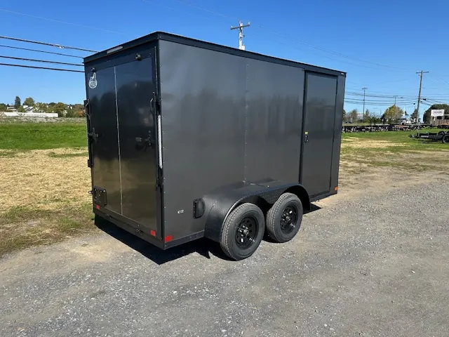 Discover the Covered Wagon 6 x 12 Dual Axle Enclosed Cargo Trailer with sleek black trim! Designed for durability and stability, this trailer offers ample space and easy loading options for all your hauling needs. Perfect for both personal and commercial use. Shop now at [Pull Cargo Trailers]!